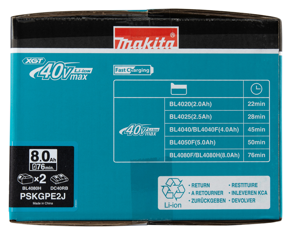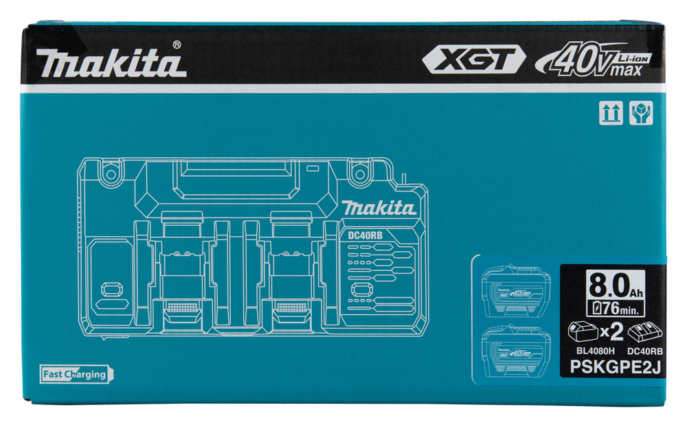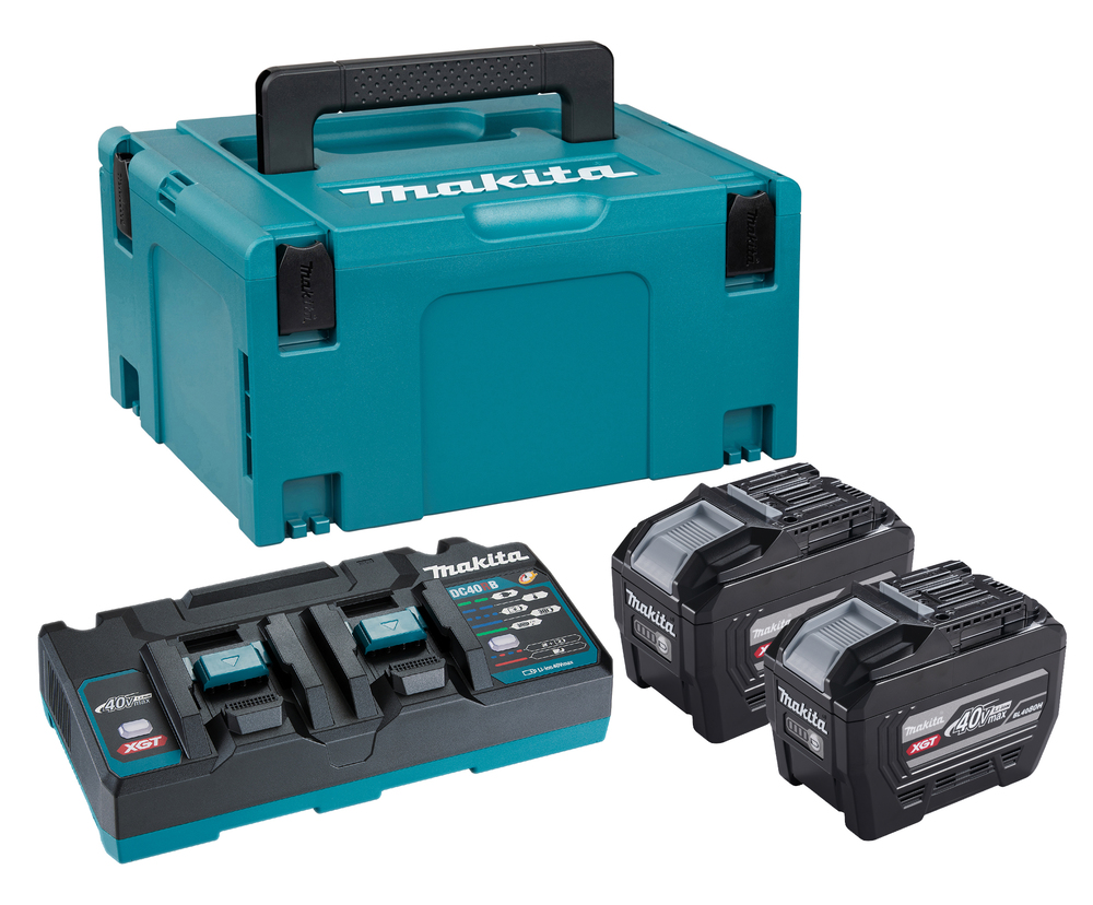 XGT Power Source Kit mit zwei BL4080H-Akkus, DC40RB-Ladegerät mit zwei Anschlüssen und Makpac-Koffer